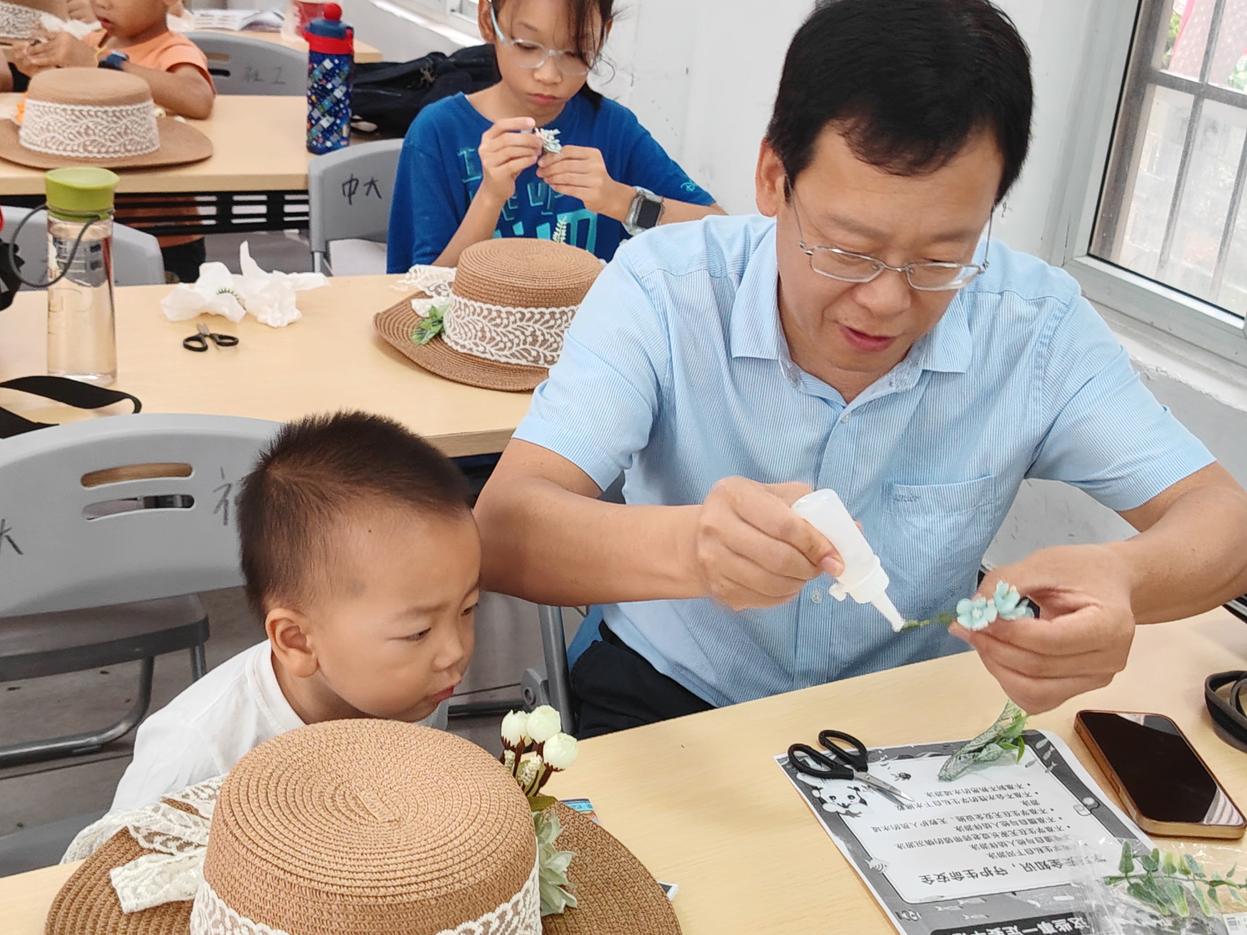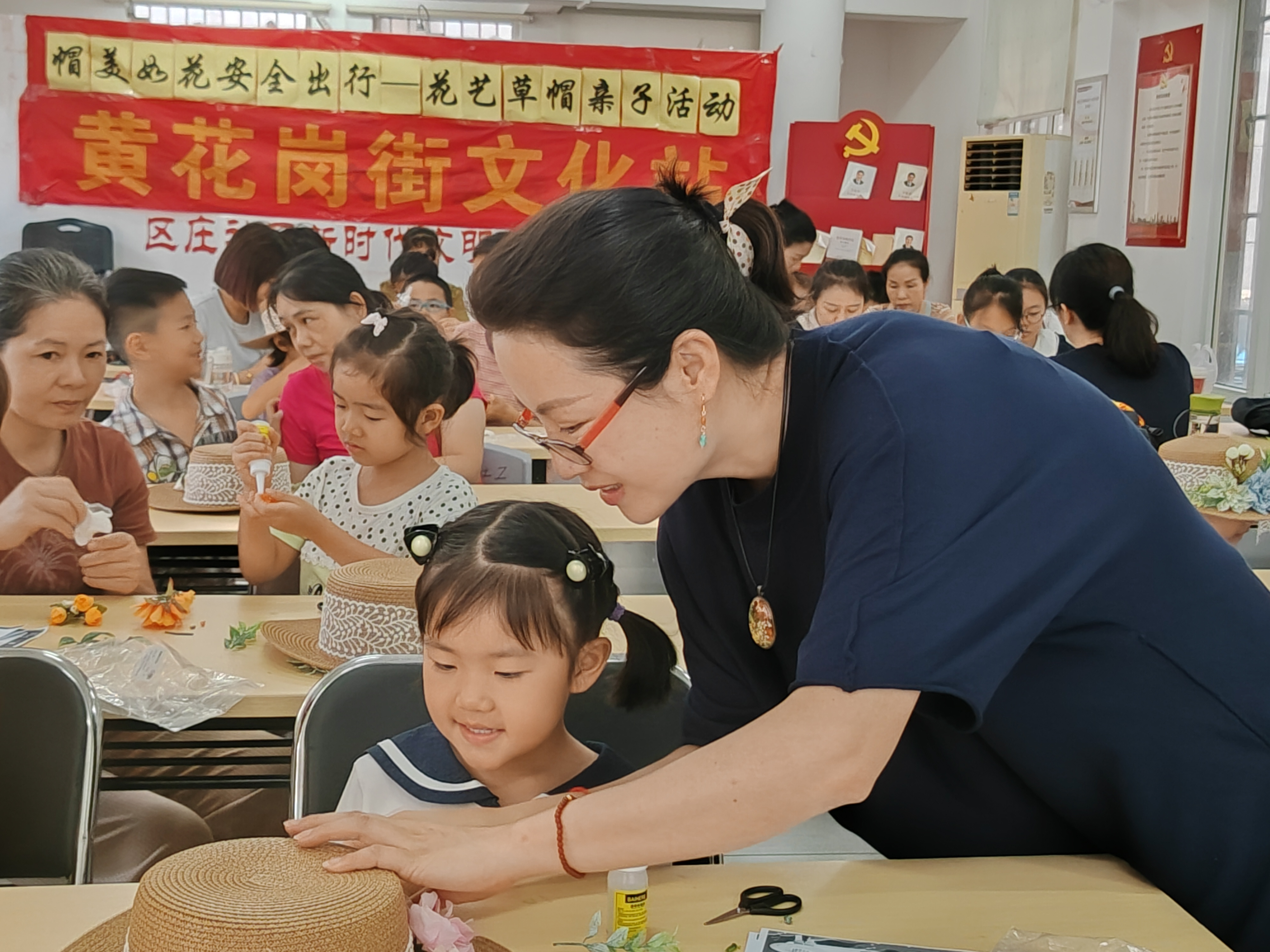 “帽”美如花安全出行,黄花岗街开展花艺草帽亲子DIY主题活动