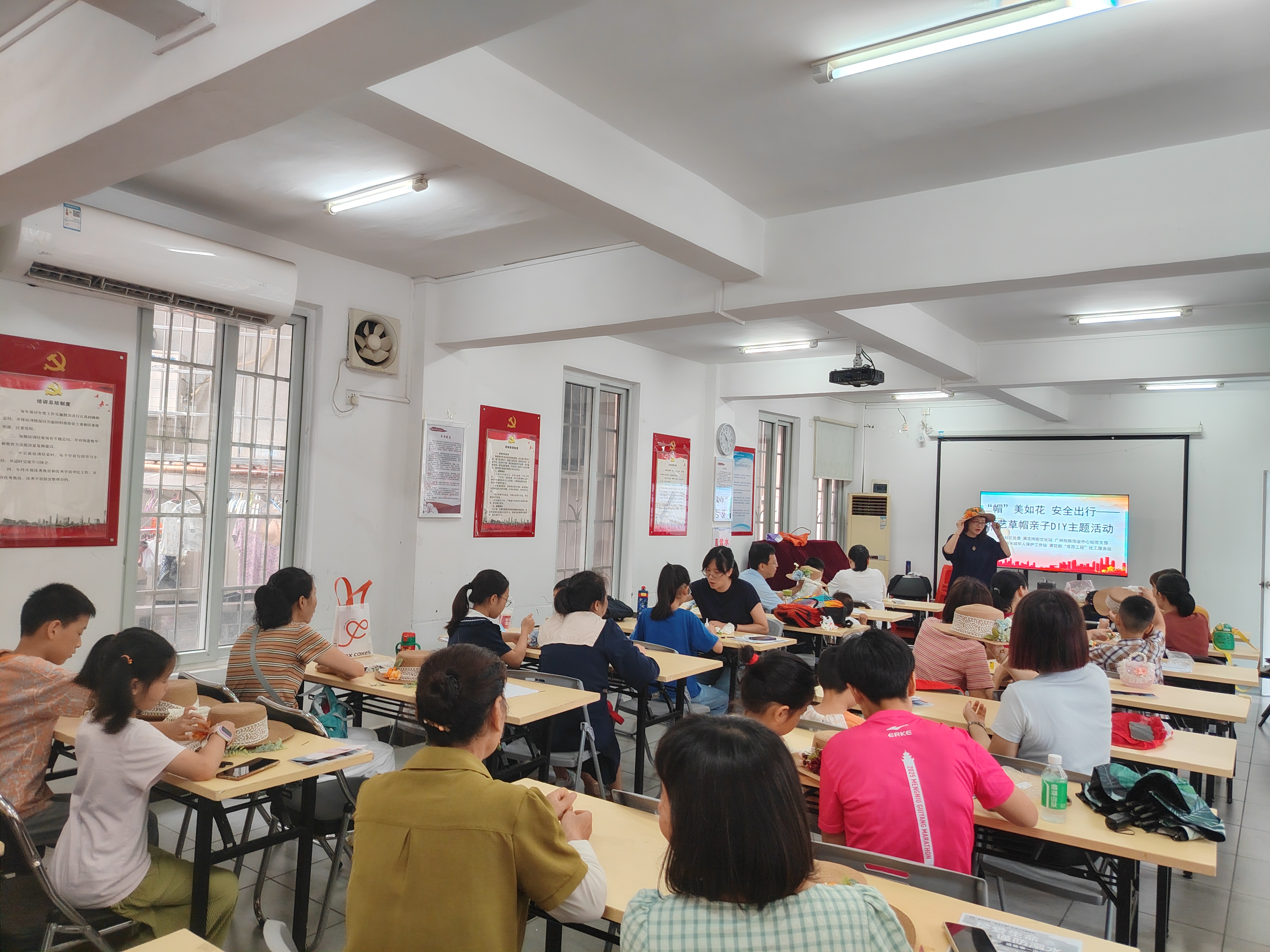 暑期将至,为深入落实“少年儿童心向党 真情相伴护成长”儿童关爱服务行动部署要求,6月22日上午,一场别开生面、兼具知识性与趣味性的主题活动在黄花岗街文化站二楼精彩上演。黄花岗街文化站、区庄社区党委携手区庄社区公共卫生委员会、黄花岗街未成年人保护工作站、黄花岗街“双百工程”社工服务站以及广州地铁淘金中心站党支部,共同开展“帽”美如花安全出行——花艺草帽亲子DIY主题活动,为社区亲子家庭带来一场难忘的体验之旅。